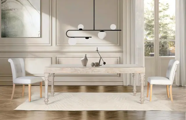 Ročno izrezljana pravokotna jedilna miza iz mangovega lesa 220 cm
