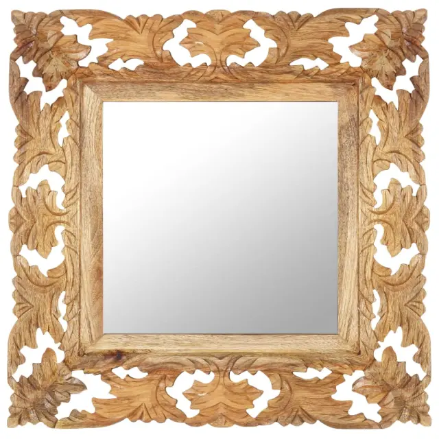 Ročno izrezljano Ogledalo - Zrcalo - Kozmetično ogledalo rjavo 50x50 cm trden mangov les