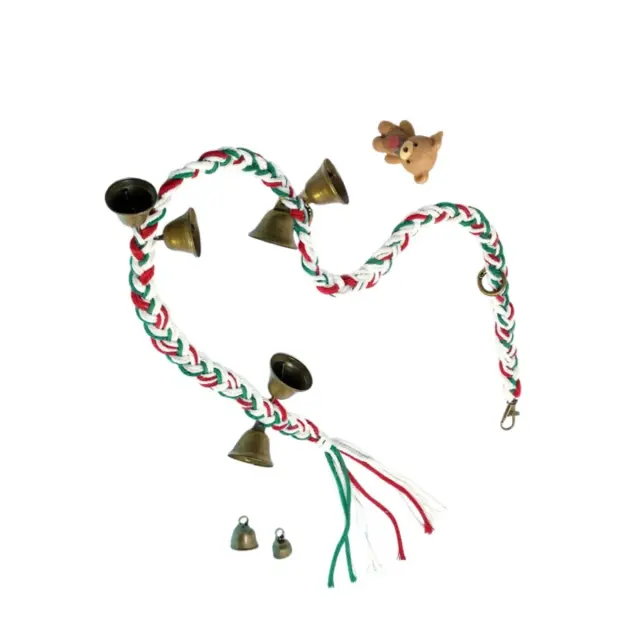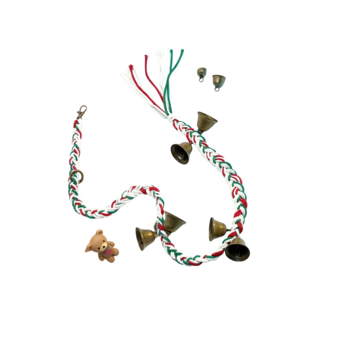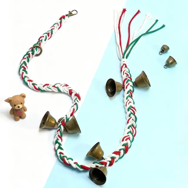Učinkovita pomoč pri treningu: Prosimo, upoštevajte: to niso originalni deli. Ta ročno tkana bombažna vrvica za pasji zvonec služi kot odlično orodje za trening navajanja psa na opravljanje potrebe zunaj. Z dosledno uporabo zvonca se bo vaš pes naučil povezovati zvonjenje z odhodom ven, da se olajša. Ta metoda spodbuja jasno komunikacijo in zmanjšuje nesreče v hiši. Zvok zvonca je nežen, a slišen, kar zagotavlja, da ne prestraši vašega ljubljenčka, hkrati pa učinkovito signalizira njegovo potrebo po odhodu ven. Ta interaktivni pristop krepi vez med vami in vašim kosmatincem, zaradi česar je trening pozitivna in nagrajujoča izkušnja. Je preprost, učinkovit in human način, da svojega psa naučite pravilnih higienskih navad.