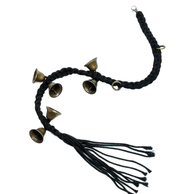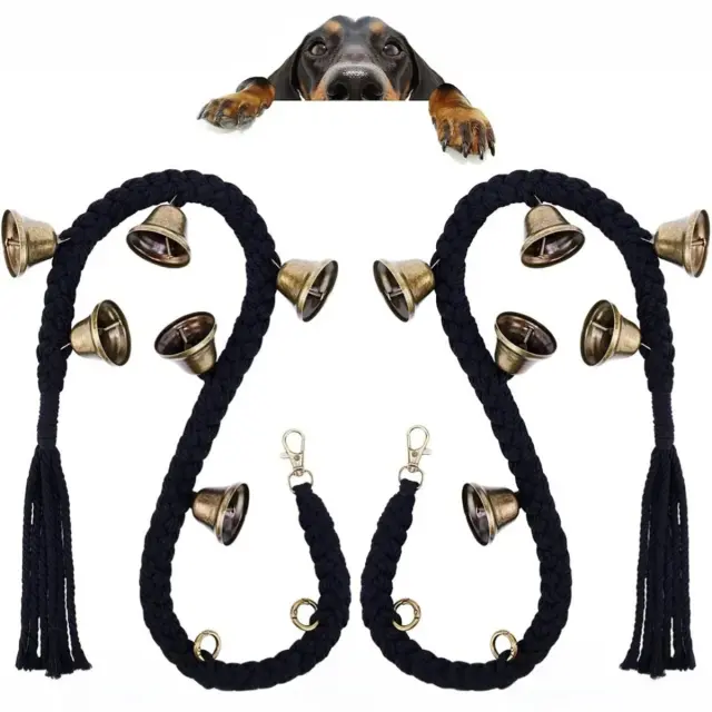 Učinkovito komunikacijsko orodje: Ta zvonček za hišne ljubljenčke služi kot odlično komunikacijsko orodje med vami in vašim kosmatincem. Dosleden zvok zvončkov omogoča vašemu psu, da signalizira, kdaj mora iti ven, kar spodbuja boljše razumevanje in zmanjšuje nesreče v zaprtih prostorih. Ročno tkana bombažna vrvica je nežna do pasjih tačk, zaradi česar je udoben in učinkovit način za sporočanje njihovih potreb. Ta sistem spodbuja pozitivno okrepitev in krepi vez med vami in vašim hišnim ljubljenčkom, kar vodi do srečnejšega in čistejšega doma. Je preprosta, a močna rešitev za učinkovito treniranje psov.