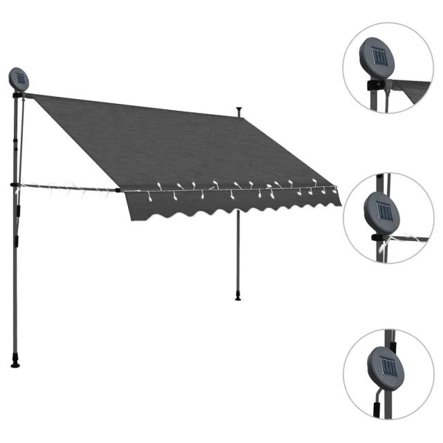 Ročno zložljiva tenda - Senčniki z LED lučkami 300 cm antracitna