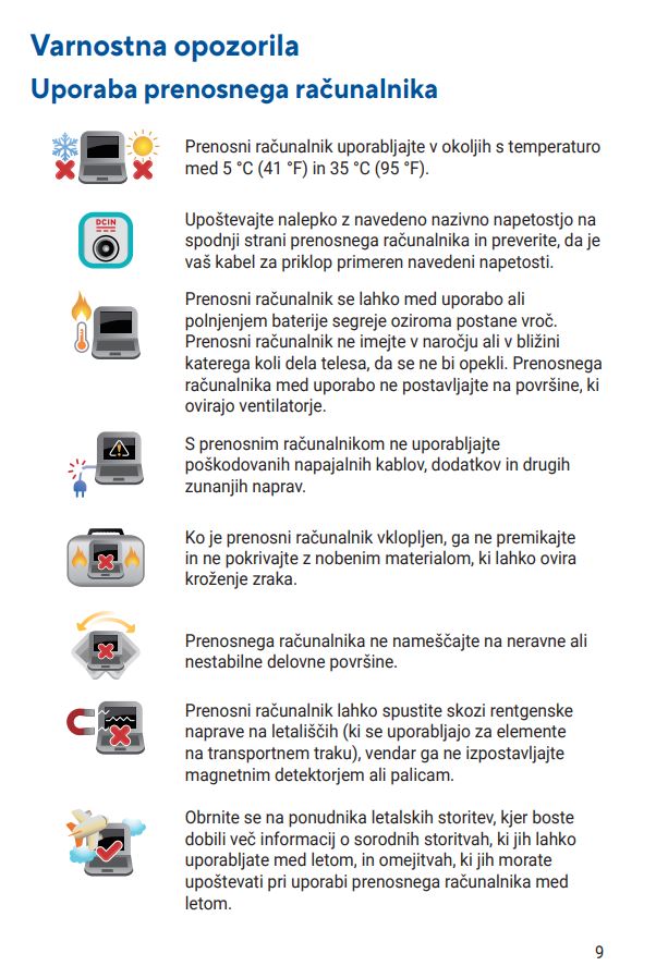 Slike o varnosti izdelka vsebujejo opozorila na embalaži izdelka in lahko vključujejo ključne varnostne informacije, povezane z določenim izdelkom.