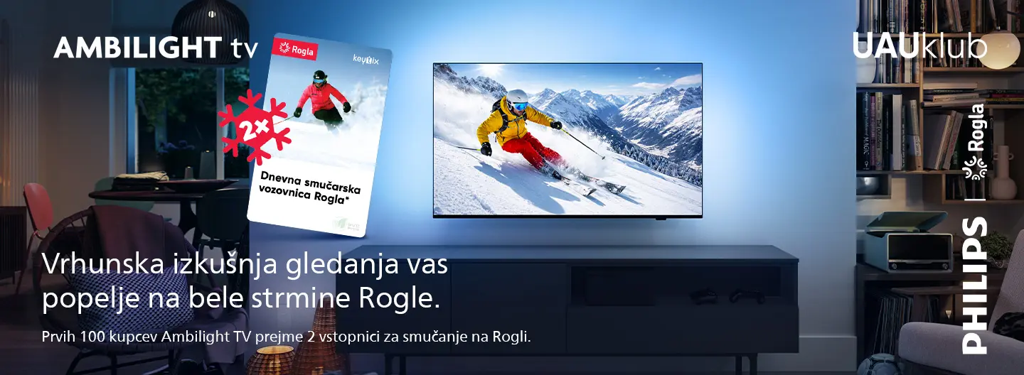 Ob nakupu Philips Ambilight televizorja z diagonalo 139 cm (55'') ali več ti podarimo dve dnevni smučarski vozovnici za smučišče Rogla!
