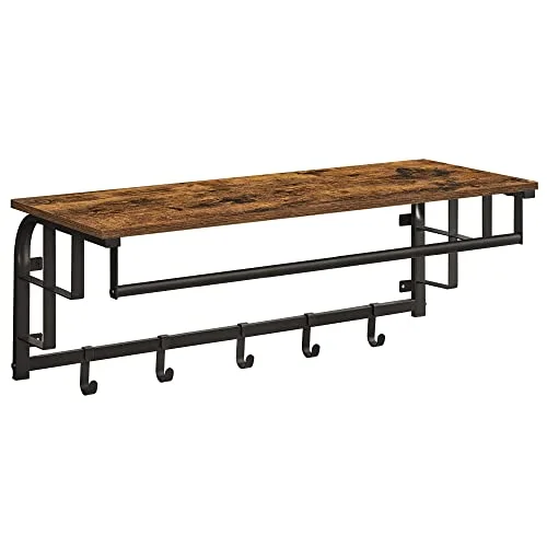 Rokavica na stenah, oblečena tirnica s 5 odstranljivimi kavlji, lebdeča polica z obešalno tirnico, za hodnik, spalnico, dnevno sobo, rustikalno rjava