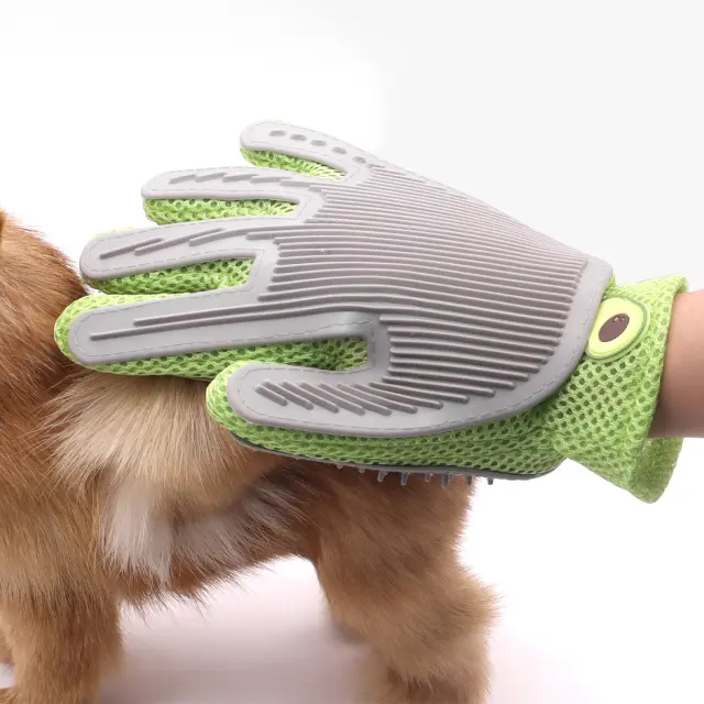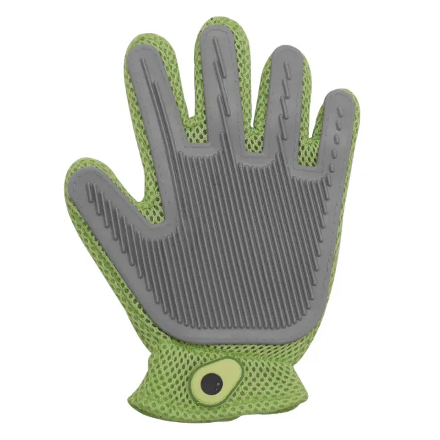 Dvostranski dizajn: Ta rokavica z dvostranskim dizajnom ponuja vsestranskost pri negi. Ena stran ima silikonske nodule za učinkovito odstranjevanje dlak in masažo, medtem ko ima druga stran gladko površino za božanje in glajenje dlake. To vam omogoča, da prilagodite izkušnjo nege glede na potrebe in želje vašega ljubljenčka.