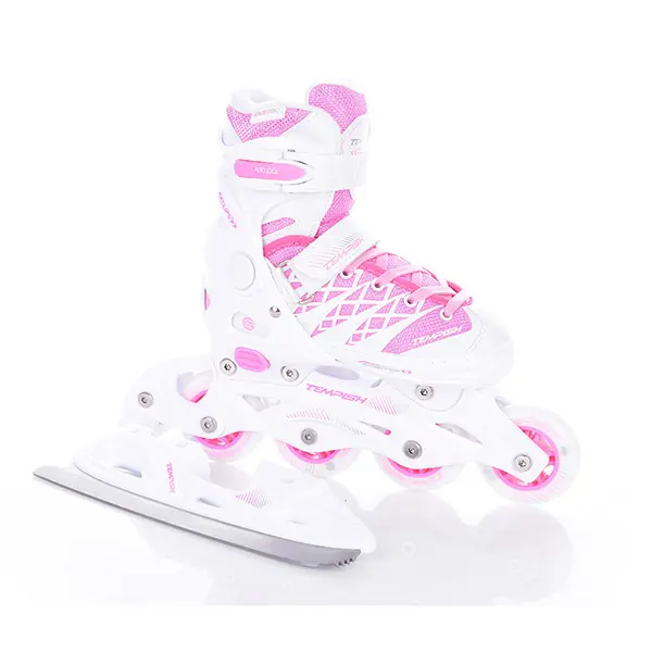 Dekliški model drsalk / rolarjev v enem. Namenjeni so tako začetnikom kot tistim otrokom, ki že znajo dobro drsati /rolati. Menjava iz drsalk v rolerje je hitra in enostavna. V kompletu je poleg kline za drsanje tudi podvozje s koleščki za rolanje.