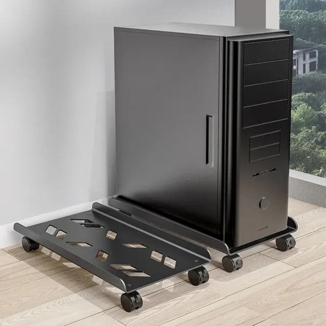 Enhanced Mobility & Access: To mobilno stojalo za računalniški stolp omogoča izjemno mobilnost, saj lahko brez težav premikate računalniški stolp za čiščenje, vzdrževanje ali preurejanje delovnega prostora. Gladko tekoča kolesa zagotavljajo enostavno drsenje po različnih površinah, medtem ko integriran zavorni mehanizem varno zaklene stojalo na mestu in preprečuje nenamerno premikanje. Ta izboljšana dostopnost poenostavlja upravljanje kablov in omogoča boljši pretok zraka okoli vašega računalnika, kar prispeva k optimalni zmogljivosti in dolgo življenjski dobi.