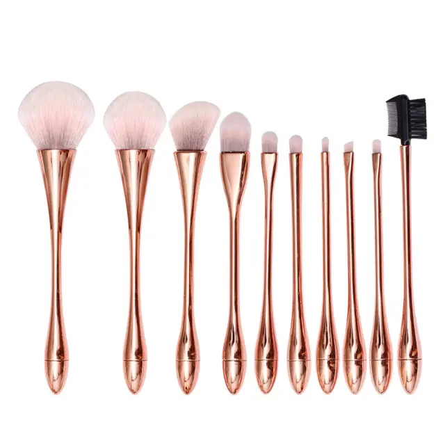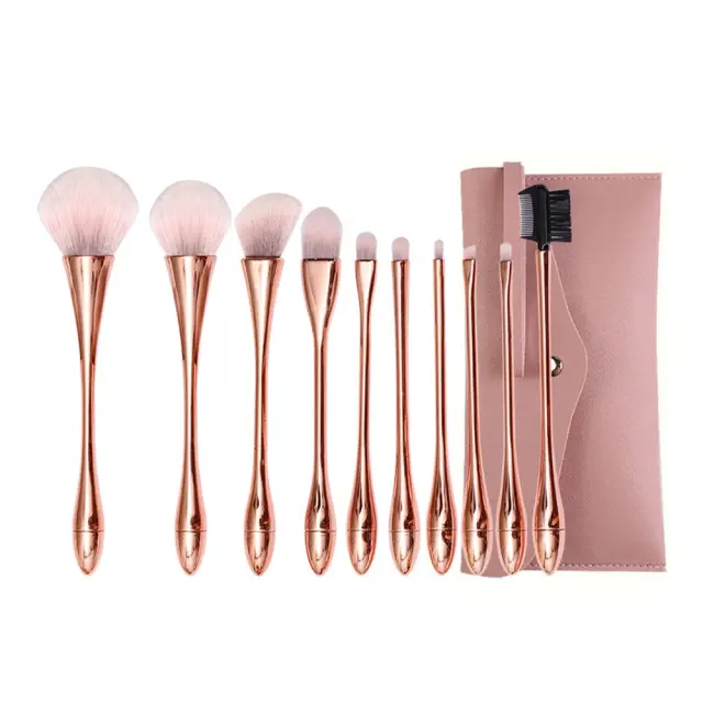 Rose Gold & Pink White Set Čopičev za Ličenje - 10 Kosov z Roza Torbico