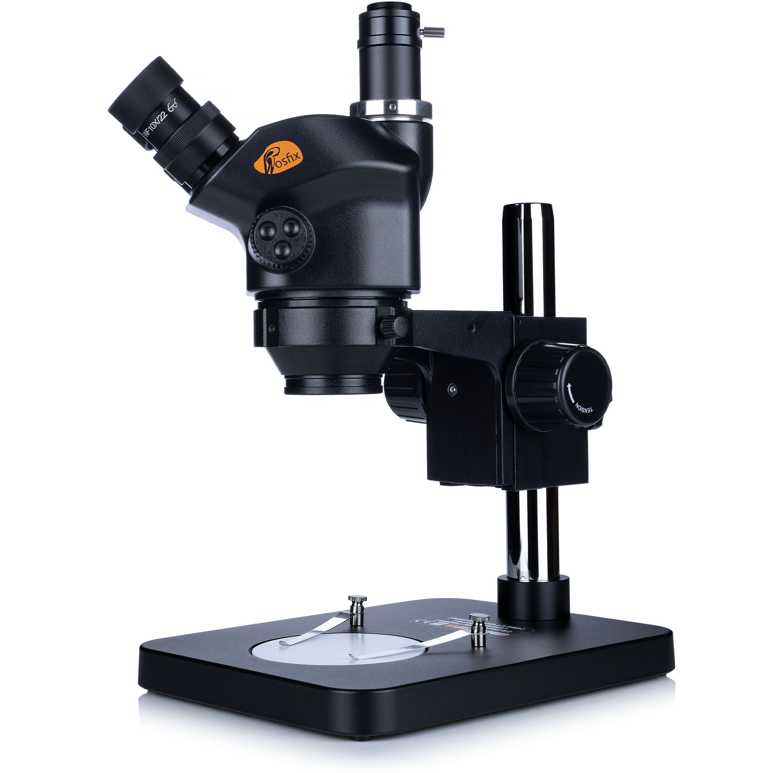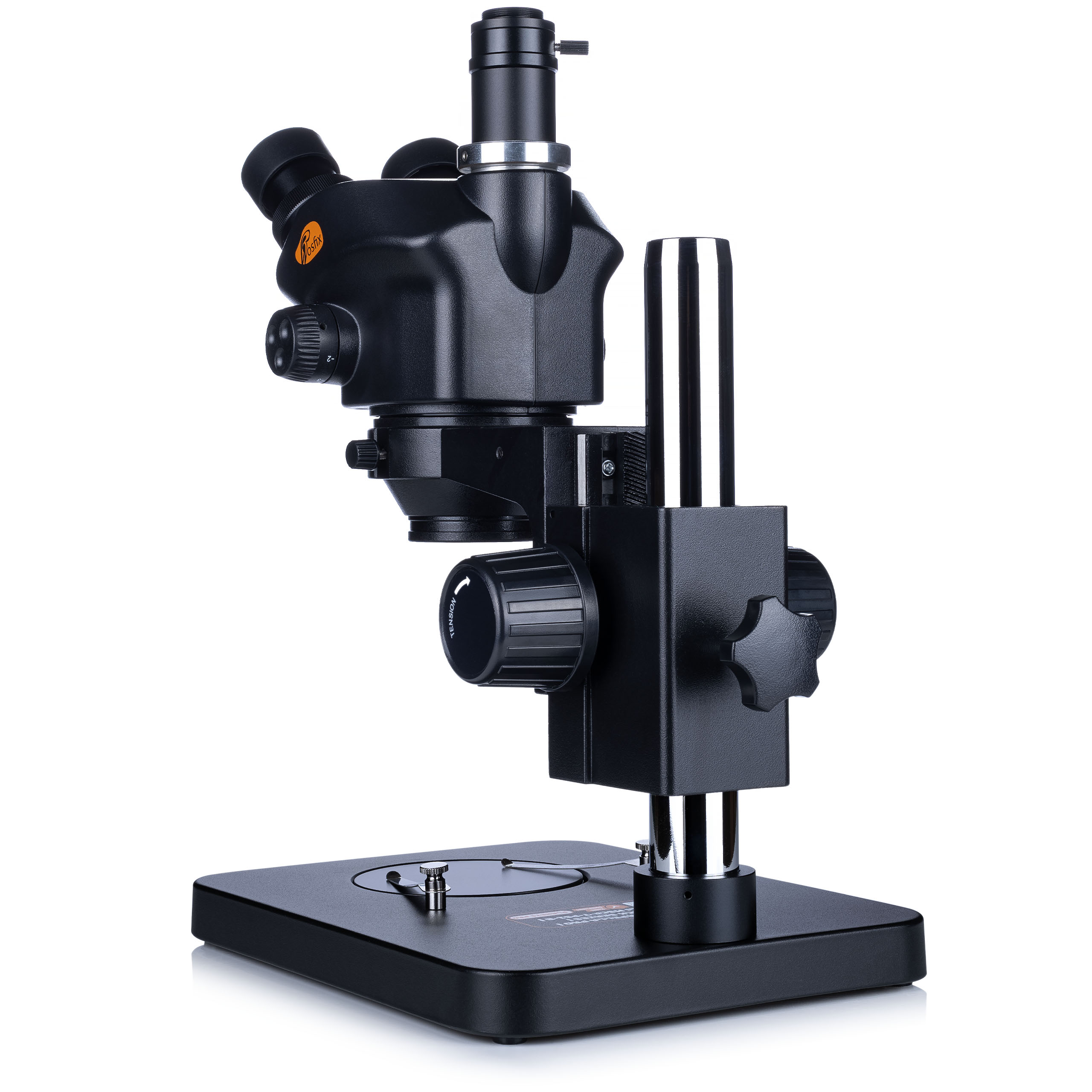 Zagotavlja varno in stabilno namestitev mikroskopa na delovnem mestu, kar omogoča gladko in natančno premikanje glave nad preiskovanim objektom.