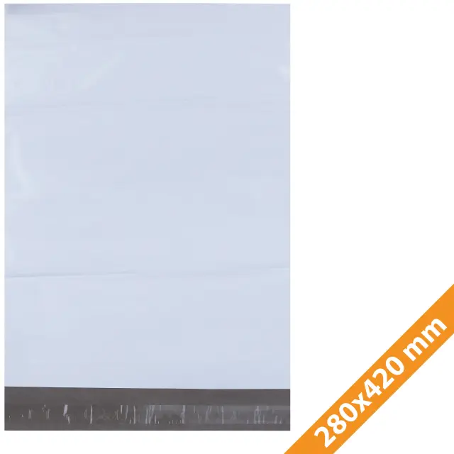 Rosfix Kurirske Folijske Vrečke 280 x 420 mm – Bela Barva, LDPE, 50 µm, 100 Kos | Samolepilni Trak