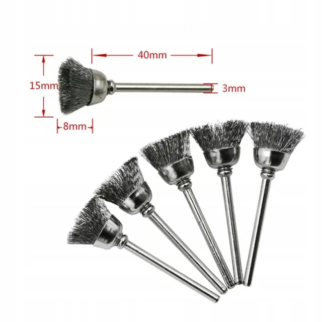 Rosfix Set Kovinskih Krtač za Vijačnik – 15 Kos | 6–25 mm, Za Rjo, Barvo, Poliranje, Težko Dostopna Mesta
