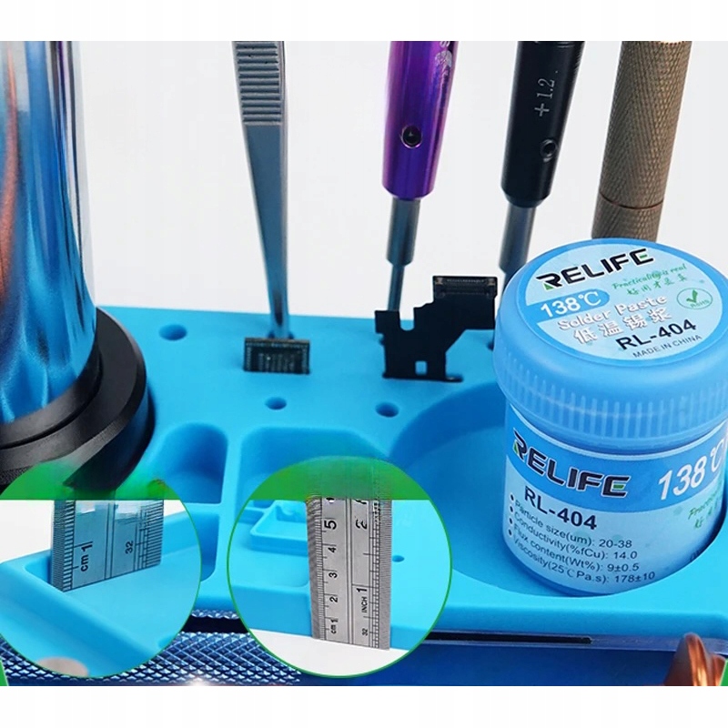 ✅ Shranjevanje in organizacija – številni predeli in držala omogočajo priročno razporeditev orodja, vijakov, SMD komponent in spajkalnih past, kar preprečuje njihovo izgubo med delom.
