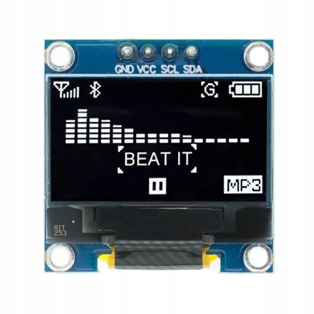 Rosfix OLED 0,96'''' Prikazovalni Modul – 4 Pini, Beli Zaslon, I2C, 128x64, 3.3–5V | 27x27 mm