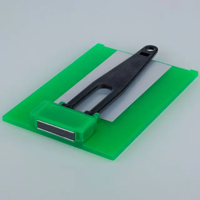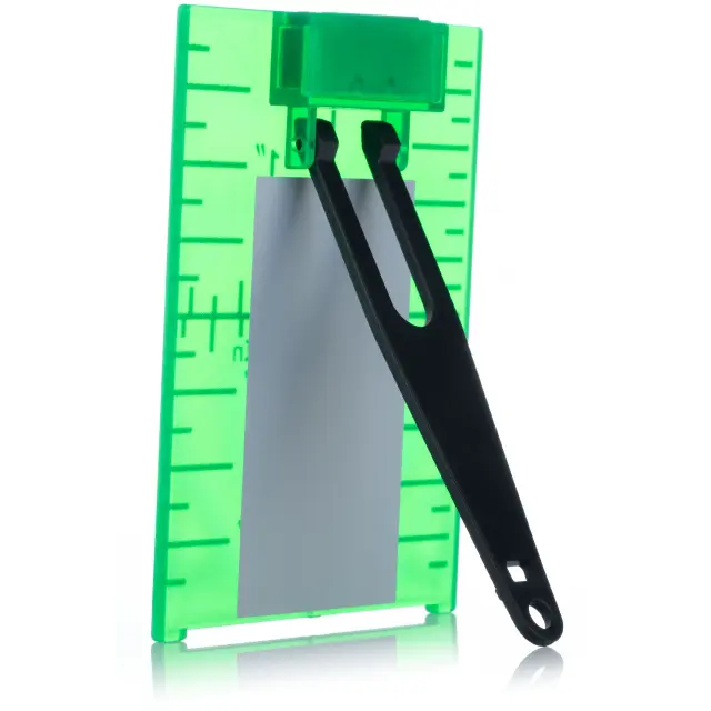 ROSFIX PLATE TARČA ZA LASERSKO NIVELIRKO – MAGNETNA, 3D SKALA, 10X7 CM, ZELENI STOJALO | ZA NATANČNE MERITVE