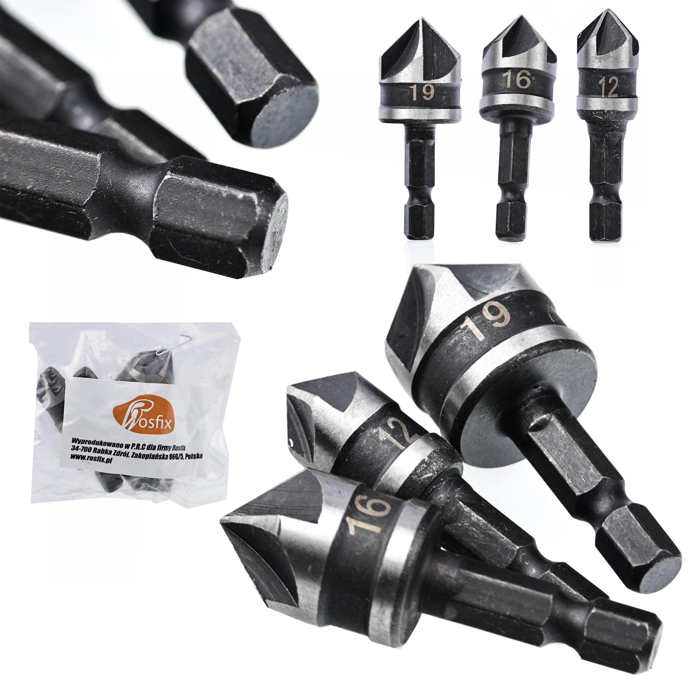 Rosfix Set Poglabljalnikov 12/16/19 mm – Nerjaveče Jeklo, 1/4'''' Vpenjanje | Za Vrtalnike in Vijačnike