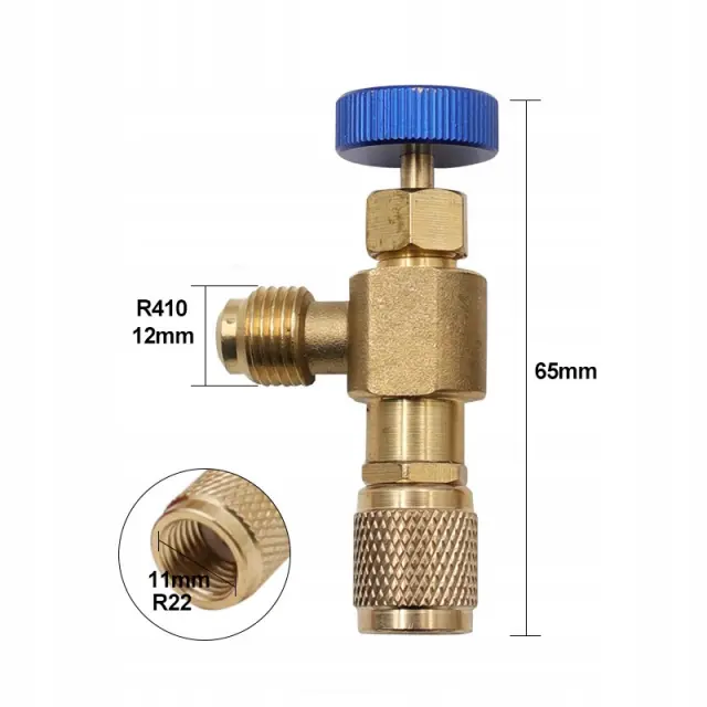 Rosfix Ventil za Polnjenje Hladilnih Sistemov R32 Spodaj R410, Stran R410 | Modra, 11 mm/12 mm Gwint