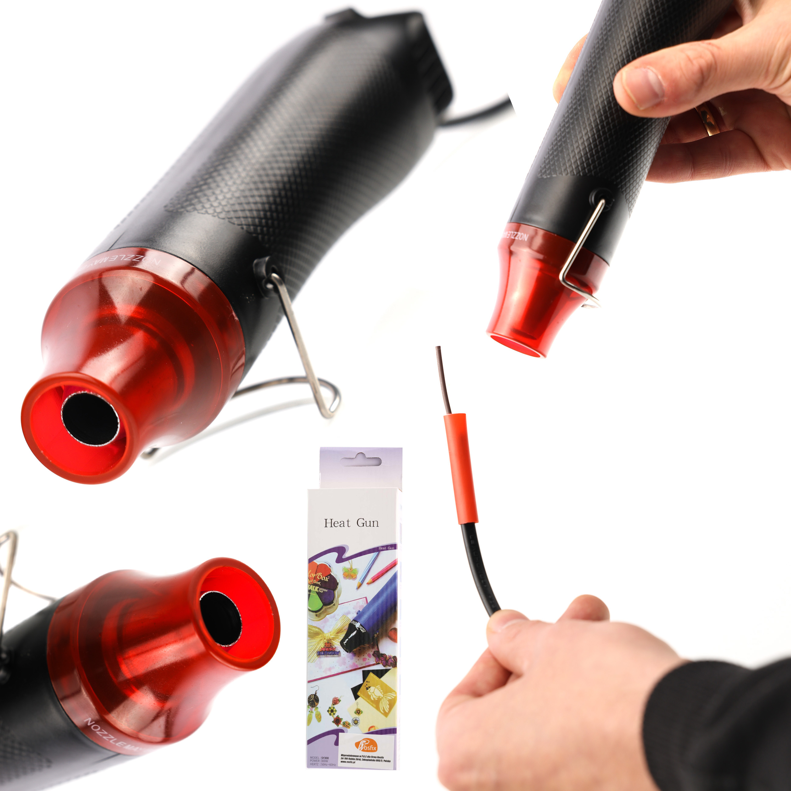 Postaji je priložen komplet treh različnih šob, ki omogočajo različne načine uporabe in so primerne za varjenje plastike in spajkanje vezij.