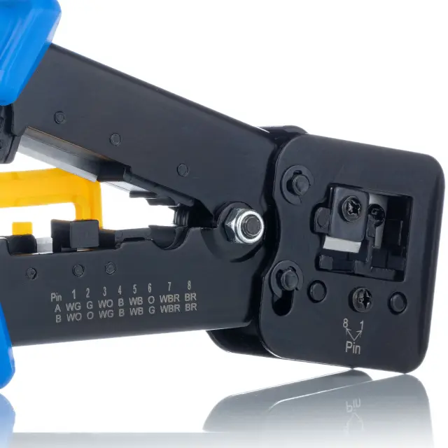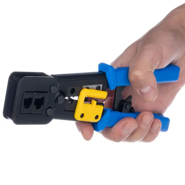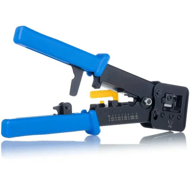 Rosfix HT-376M/LY2070A Krimpalna Klešča za RJ45/RJ12/RJ11 – 240 mm, ABS, Rezalnik | 480 g, Modra/Rdeča
