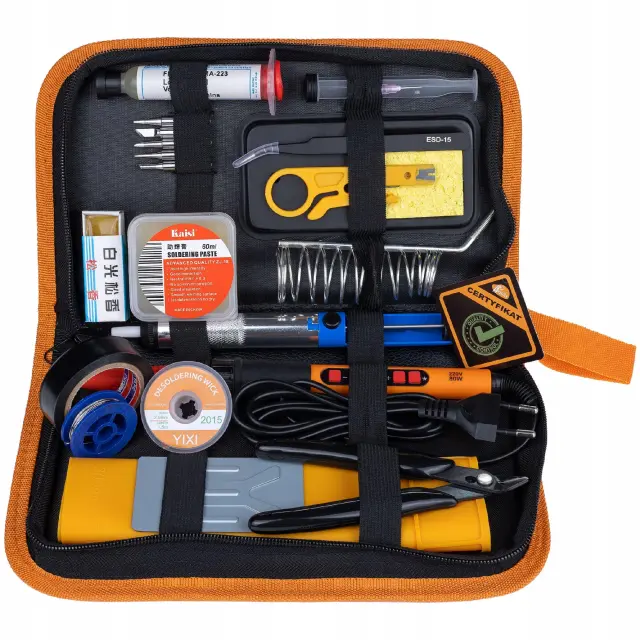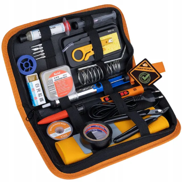 Rosfix Set Pro 80W LCD 16-in-1 is a versatile soldering kit ideal for home, workshop, or service use. It includes professional accessories ensuring precision, comfort, and safety in work.