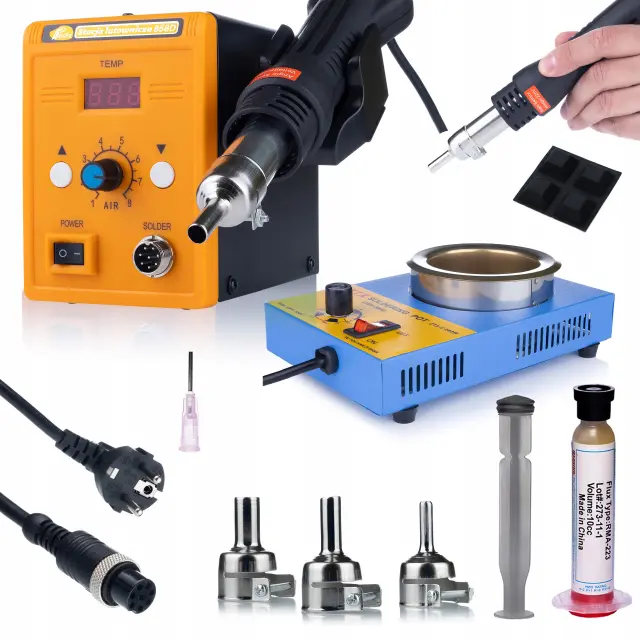 ROSFIX SET SPAJKALNA POSTAJA 858D + TYGEL 280W + FLUX RMA-223 – 700W, 100–550°C, 80MM | LED, ESD, 3 ŠOBE