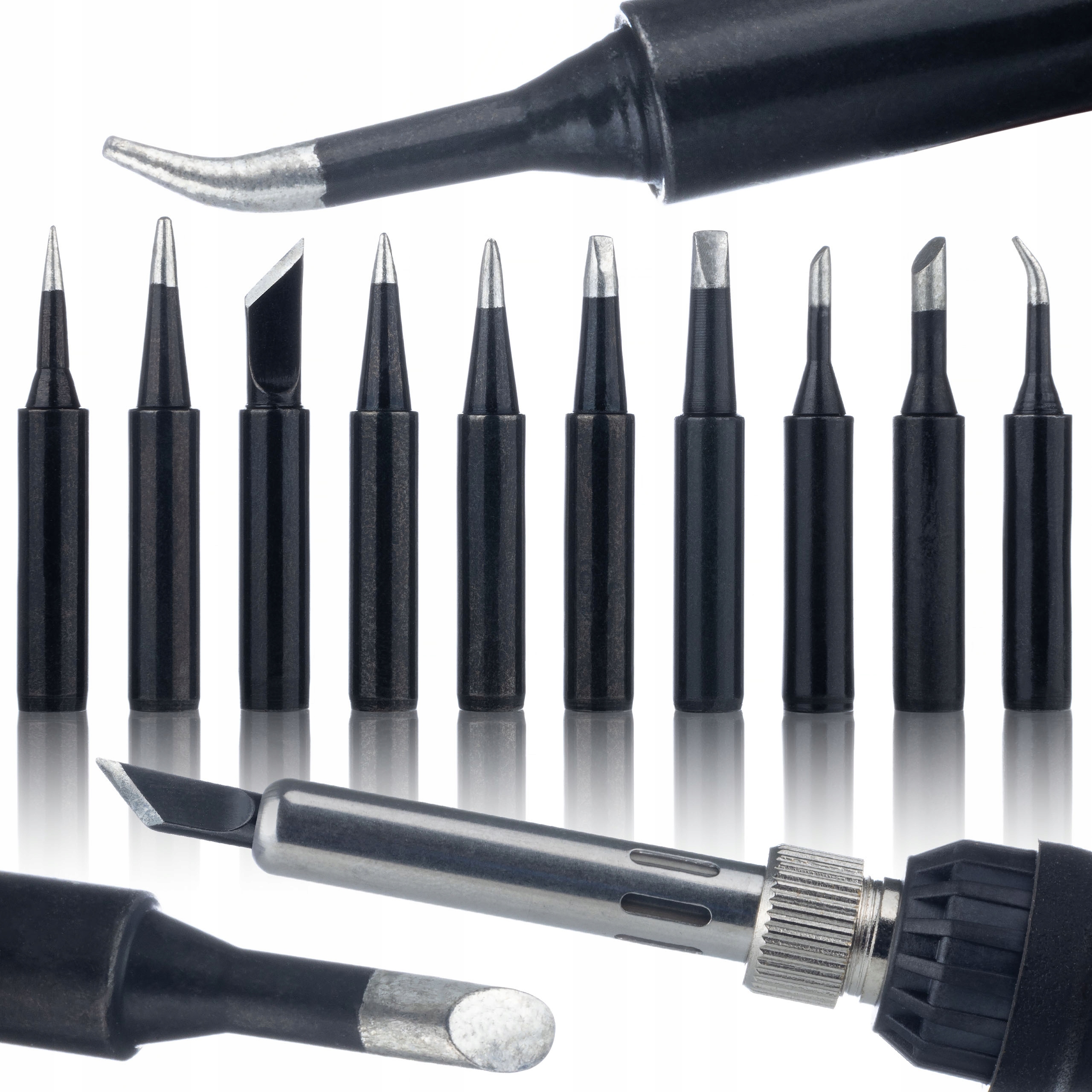 Priloženi komplet 10 posebnih konic 900M s črnim, oksidaciji odpornim premazom poveča toplotno prevodnost in zmanjša obrabo materiala. Omogočajo gladek in enakomeren prenos toplote, kar odpravlja zamude in nestabilnost temperature med delovanjem.