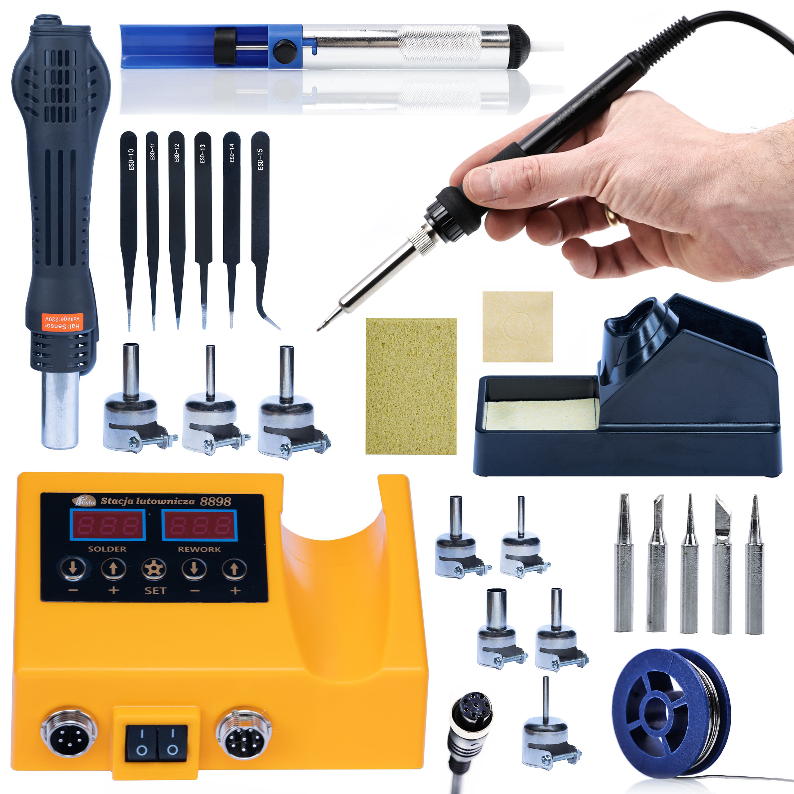 ROSFIX SET SPAJKALNA POSTAJA OH660 – 2V1 HOT-AIR IN GROT, LED, 660W | 100–500°C, 22 MM, 230V, 3,3 KG