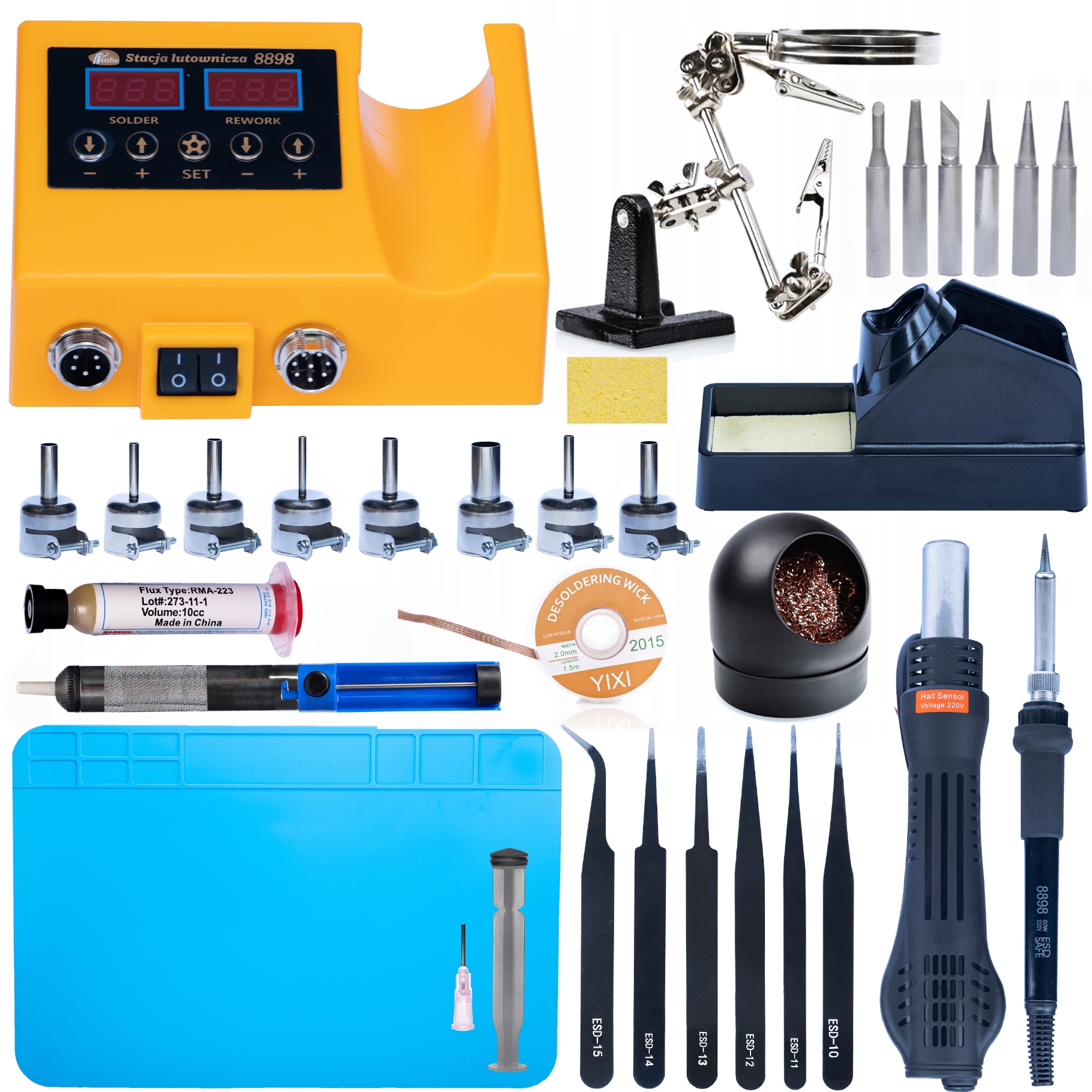 ROSFIX SET SPAJKALNA POSTAJA OH660 – 2V1 VROČ ZRAK IN GROT, 660W, LED, 100–500°C | 230V, 22 MM DYSZE, 3,3 KG
