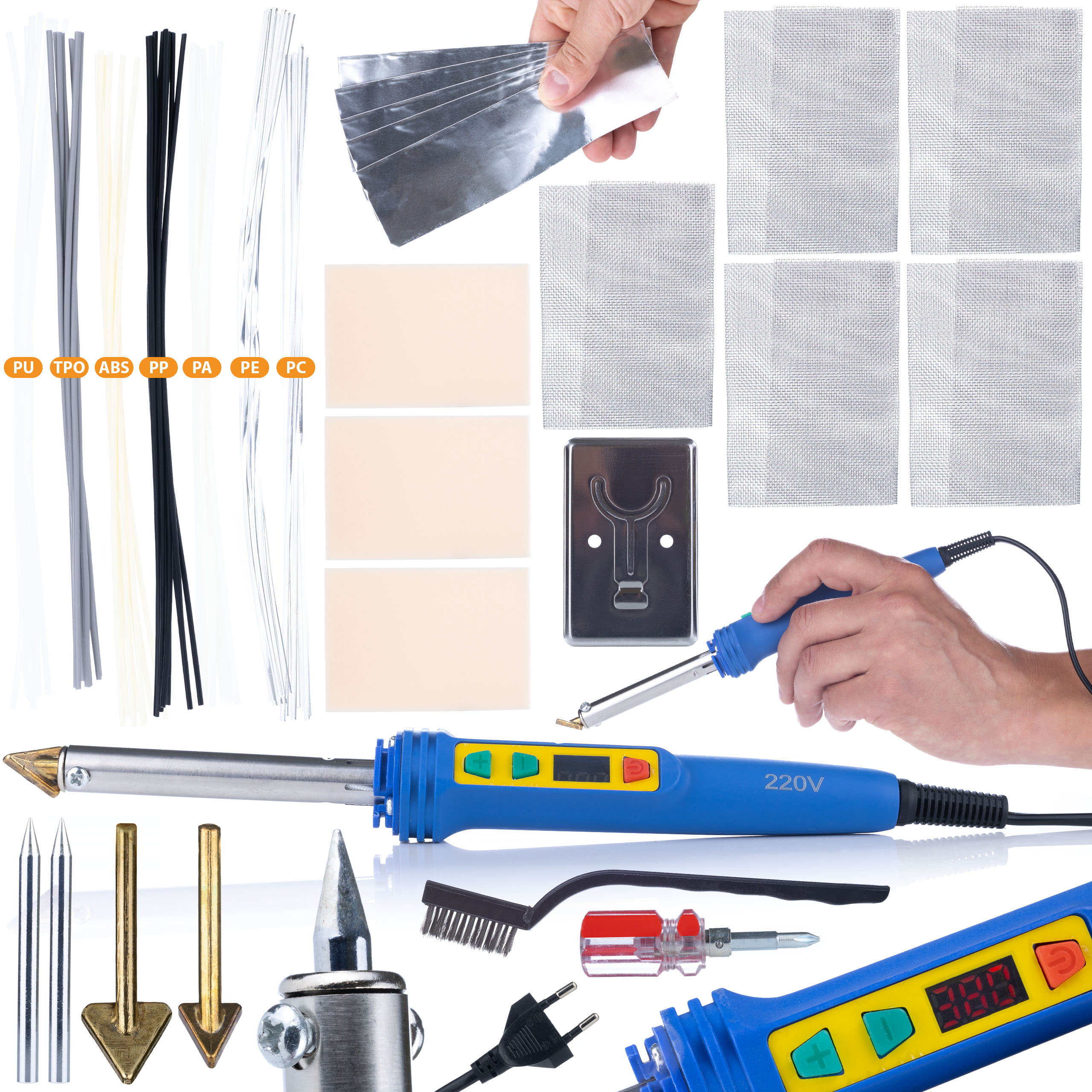 ROSFIX SET SPAJKALNIK ZA PLASTIKO BLUE KONG RBK120W – 120W, 200–600°C, 5 MREŽIC, 7 TIPOV PLASTIKE | ZA POPRAVILO IN VARJENJE PLASTIKE