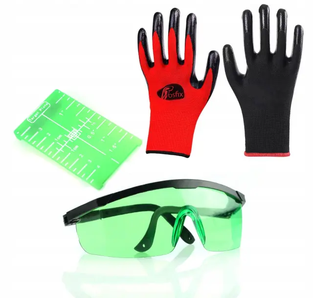 ROSFIX SET TARČA ZA LASERSKO NIVELIRANJE, ZELENI ZASČITNI OČALA IN DELOVNE ROKAVICE L | 10×7 CM, 2 MAGNETA, 505–540 NM, VELIKOST 10