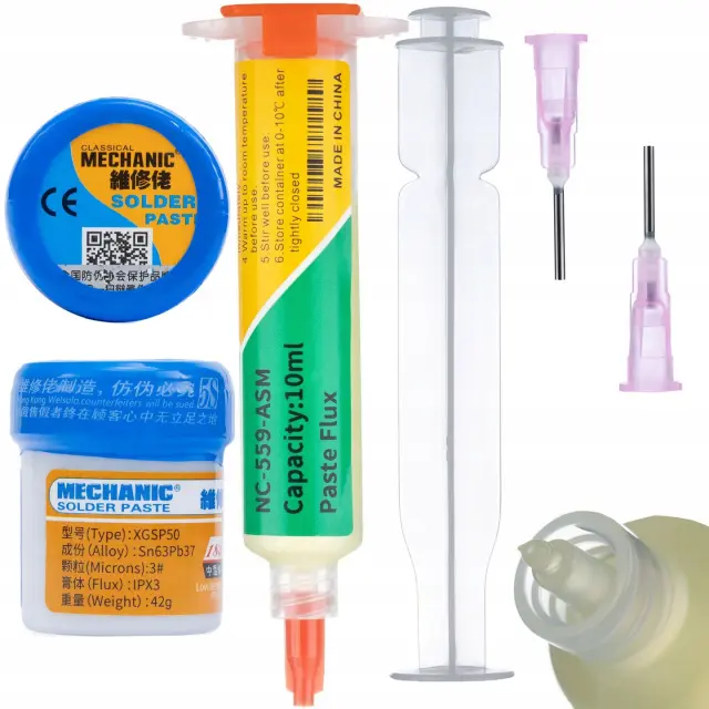 ROSFIX SET TOPILO NC-559-ASM IN SPAJKALNA PASTA XGSP50 – 42 G, 183 °C, SN63/PB37, 25–38 ΜM | ZA SMT IN BGA