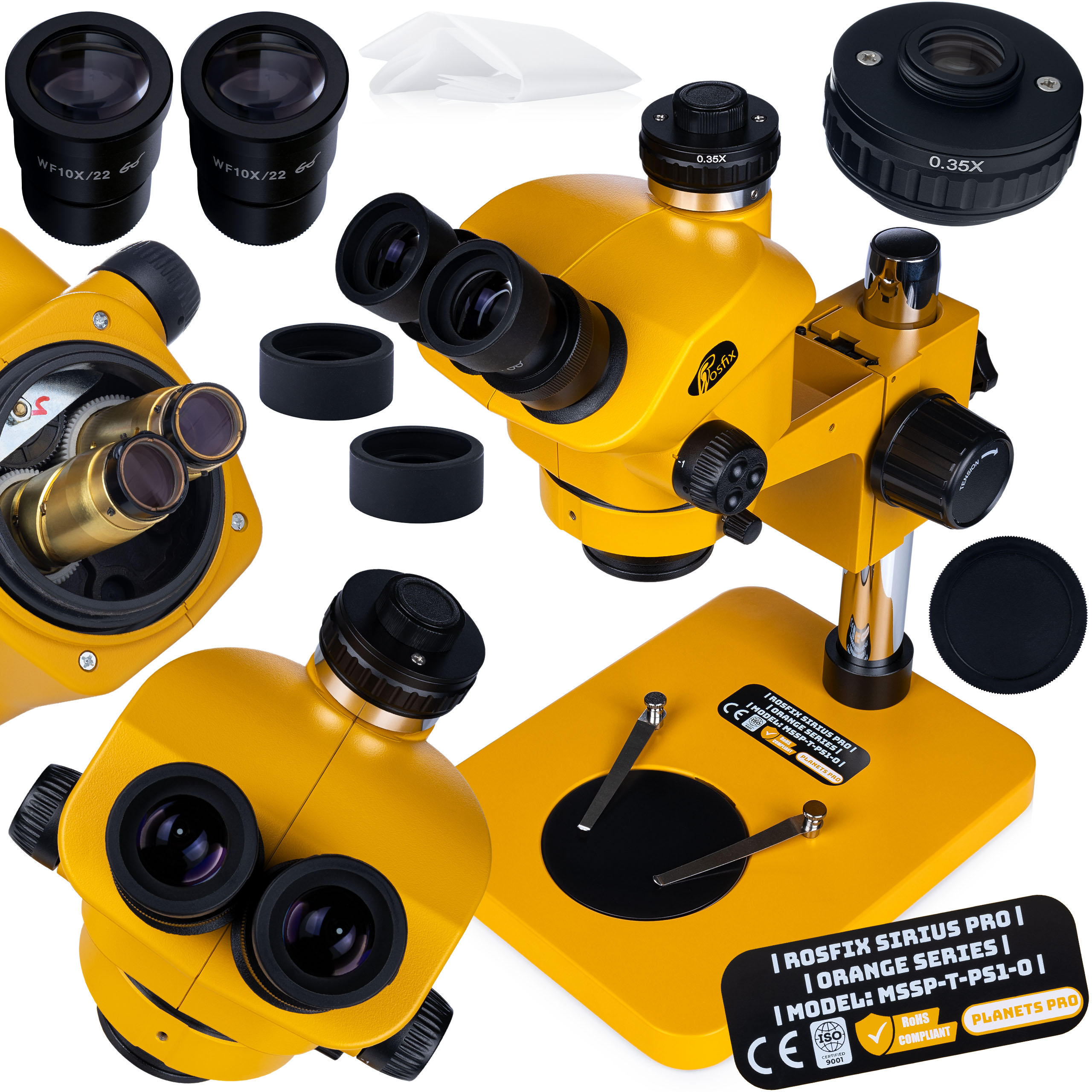 Trinokularni stereoskopski mikroskop Rosfix Sirius Pro MSSP-T-PS1-O spada v profesionalno linijo Orange PRO, ki združuje moderno optiko, natančno mehaniko in ergonomsko oblikovanje, idealno za serviserje elektronike, laboratorije, precizno industrijo, zlatarje in izobraževalne ustanove.