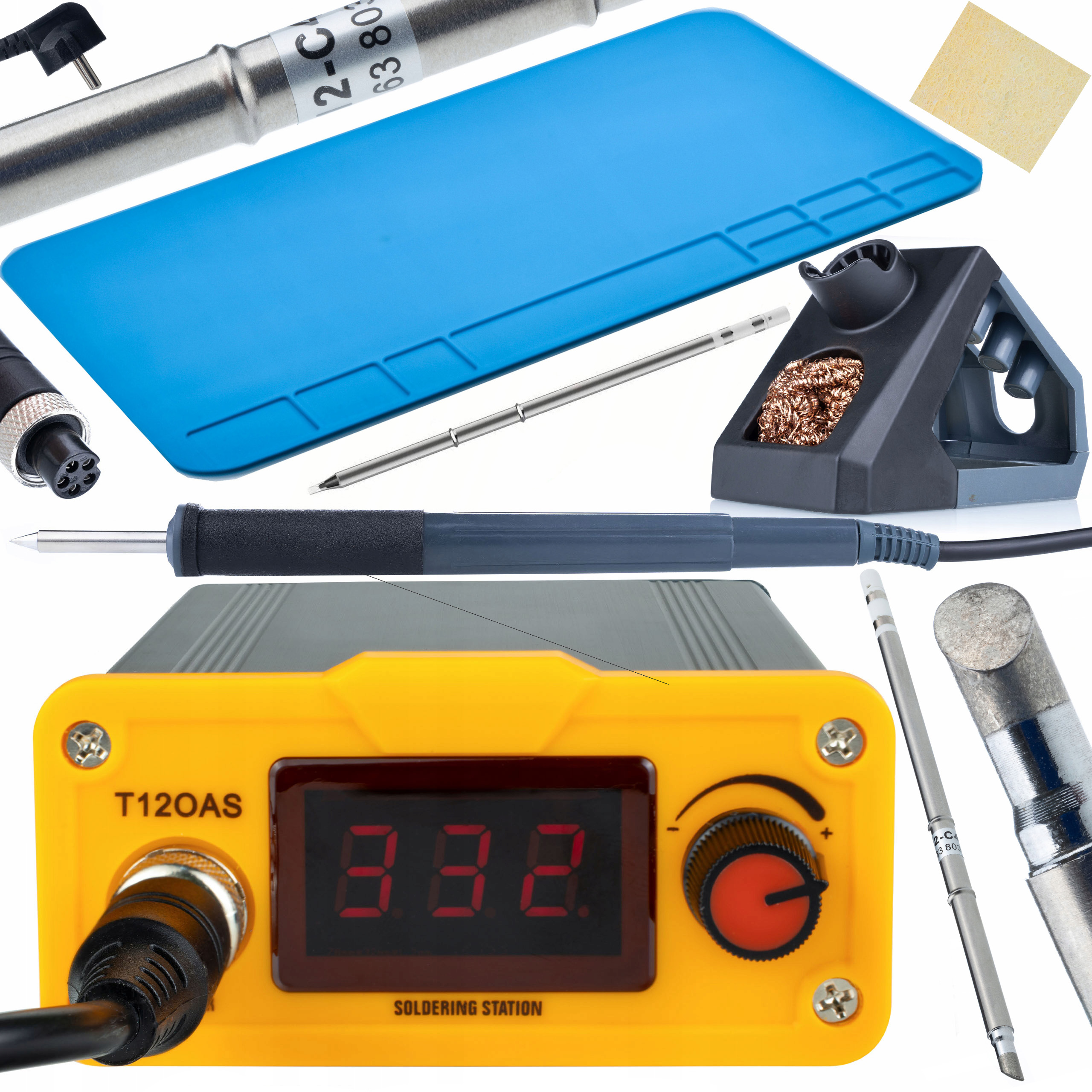 Ta komplet vsebuje vse, kar potrebujete za začetek uporabe profesionalne spajkalne postaje T12 Rosfix Orange Akbash Standard.