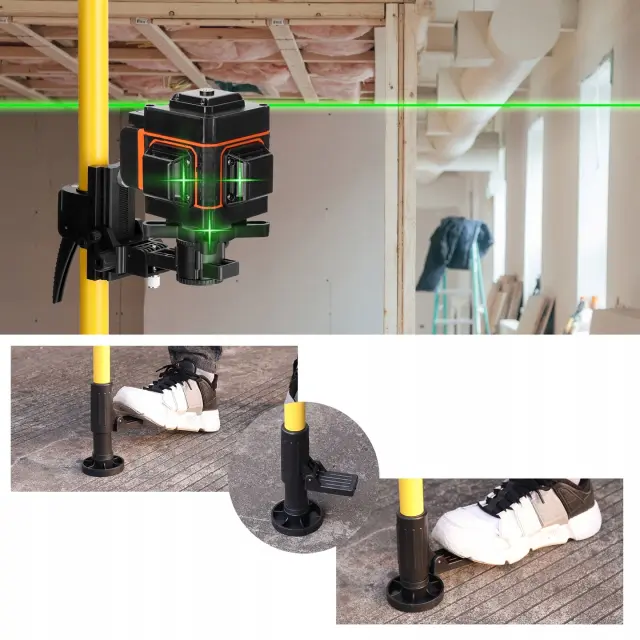 ROSFIX TELESKOPSKO STOJALO 405 CM – ALUMINIJASTA MERILNA PALICA Z NAVOJEM 1/4" | NASTAVLJIVA VIŠINA | ZA LASERJE | GRADBENA OPREMA