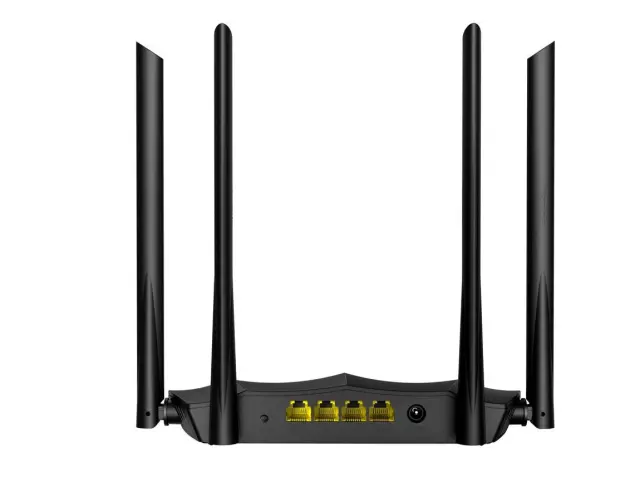 - Podprti standardi: 5GHz; IEEE 802.11ac/n/a in 2.4GHz; IEEE 802.11n/g/b - Frekvenca: 2.4GHz in 5GHz sočasno - Hitrost: 5GHz do 867Mbps; 2.4GHz do 300Mbps - Antena: 4x 6dBi External Dual Band Antennas - Zaščite: WPA-PSK/WPA2-PSK, WPA/WPA2 - Priključki: 3x 10/100/1000Mbps LAN ports; 1x 10/100/1000Mbps WAN port - Načini delovanja: Wireless Router Mode / AP Mode / Universal Repeater mode / WISP Mode - DHCP Server: DHCP Server / DHCP Client List / DHCP Reservation - DDNS: Support DynDNS, 88ip - Firewall: Forbid WAN PING from internet - Ostalo: Broadband management / MAC address clone / Static Routing; System Log / Backup & Restore configurations / ; Firmware upgrade from local - Napajanje: DC 9V/1A - Dimenzije: 200x127x34mm - Garancija: 36 mesecev