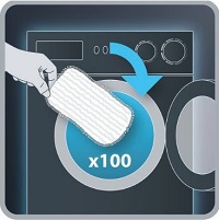 Dve vrste pralnih krp v različni razmerjih kombinacije najlona in mikrofibre: najlonske niti za čiščenje trdovratne umazanije na zelo umazanih tleh in goste niti mikrofibre za čiščenje vseh vrst podlag, ki niso tako umazane.
