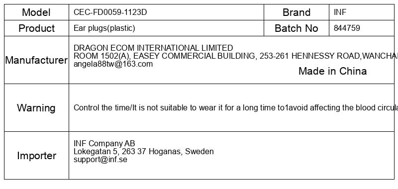 Nadzorujte čas/Ni primerno, da ga nosite dlje časa, da ne bi vplivali na prekrvavitev ušesa, izogibajte se odvisnosti/Ne zanašajte se na ušesne čepke običajno, še posebej se izogibajte njihovi uporabi v pomembnih primerih.