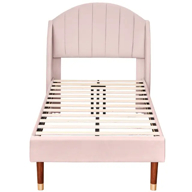 Roza žametna oblazinjena postelja 90x200 z letvenim okvirjem in vzglavjem - Otroška/Enojna postelja