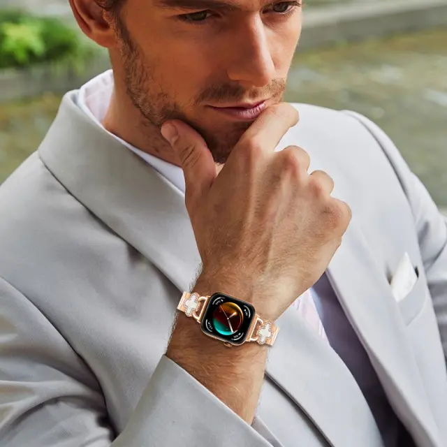 Udobje vrhunskega materiala: Ta pašček za uro, izdelan iz visokokakovostnega nerjavečega jekla in smolo iz zlitine, nudi tako vizualno privlačnost kot vrhunsko udobje nošenja. Nerjaveče jeklo zagotavlja trdnost in odpornost proti obrabi, kar zagotavlja dolgo življenjsko dobo vašega dodatka. Komponente iz zlitine dodajo subtilen kontrast in izboljšajo splošno estetiko. Gladka, polirana površina paščice je nežna do vaše kože, kar zmanjšuje draženje tudi pri dolgotrajni uporabi. Material ni izbran samo zaradi svojega videza, temveč tudi zaradi svoje sposobnosti, da prenese vsakodnevno uporabo in ohrani svojo lepoto skozi čas.