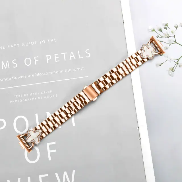 Eleganten dizajn deteljice: Povzdignite svojo pametno uro Huawei Fit 3/Fit 4/Fit 4 Pro s tem prefinjenim rožnato zlatim jeklenim paščkom za uro. Nežen dizajn deteljice doda pridih šarma in elegance, zaradi česar je primeren tako za vsakodnevno nošenje kot za posebne priložnosti. Poudarki iz zlitine dopolnjujejo nerjaveče jeklo in ustvarjajo luksuzen videz in občutek. Ta pašček je popoln način, da personalizirate svojo napravo Huawei Fit in ustvarite modno izjavo.