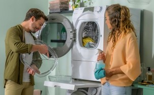 Sistem toplotne črpalke ima zelo nizko porabo električne energije in zato lahko sušilni stroj uporabljate istočasno kot pralni stroj ali druge aparate. Sistem toplotne črpalke potroši eno tretjino vrednosti v primerjavi s klasičnimi kondenzacijskim sušilnim strojem.