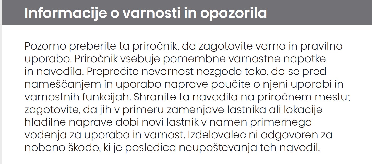 Slike o varnosti izdelka vsebujejo opozorila na embalaži izdelka in lahko vključujejo ključne varnostne informacije, povezane z določenim izdelkom.