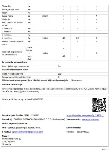 Podatki o proizvajalcu vključujejo informacije (naziv, naslov, državo in elektronski naslov) povezane s proizvajalcem izdelka.