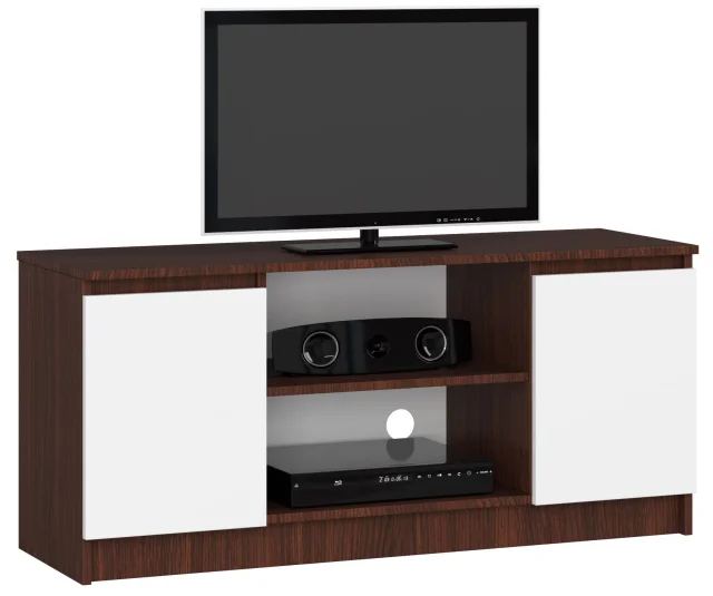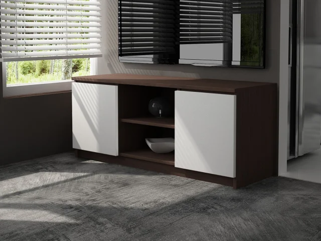 Omara, izdelana iz 16-milimetrske debele laminirane plošče, je ena naših predlog, ki bo odlično delovala v dnevnih sobah, spalnicah, sobah za goste in mnogih drugih prostorih. TV omara, ki jo z veseljem predstavljamo, je kos pohištva najvišje kakovosti, ki združuje dve kontrastni barvi - wenge in belo. Ta zanimiv predlog uživa veliko zanimanje med strankami, ki obiskujejo našo spletno trgovino, zaradi skrbne in trdne izdelave, ki je vidna na prvi pogled. 120 cm RTV omara prav tako navdušuje s svojim modernim dizajnom, kar jo naredi zelo primerno za aranžmaje, ki jih ustvarjajo tisti, ki sledijo najnovejšim trendom in imajo raje moderno opremljene notranjosti. Wenge TV omara je na voljo v naši spletni trgovini po dostopni ceni, kar je tudi njena prednost. Trajna konstrukcija pohištva in njegove vizualne lastnosti bodo zagotovo zadovoljile naše najbolj zahtevne stranke.