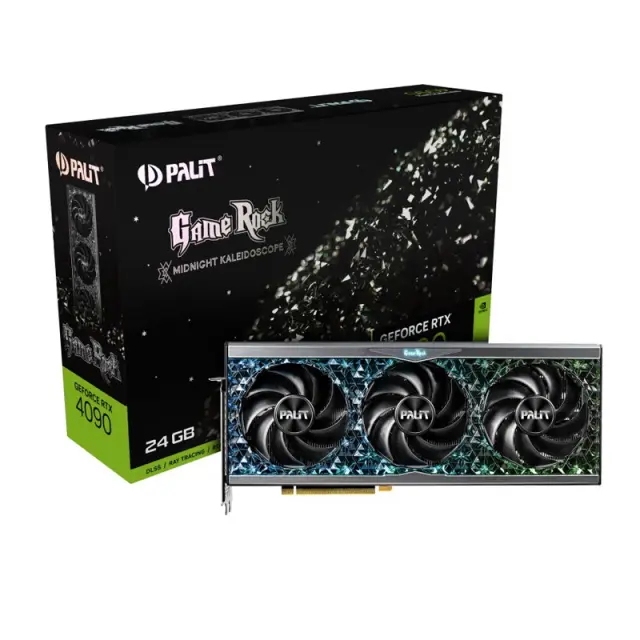 PALIT GeForce RTX 4090 GameRock grafična kartica imenovana Midnight Kaleidoscope ponuja osupljive vizualne elemente, neverjetno hitrost prikazovanja sličic in pospešek AI za igre in ustvarjalne aplikacije. Kartica z ARGB osvetlitvijo omogoča tudi prilagojene svetlobne učinke, ki ustrezajo lastnemu slogu gamerjev.