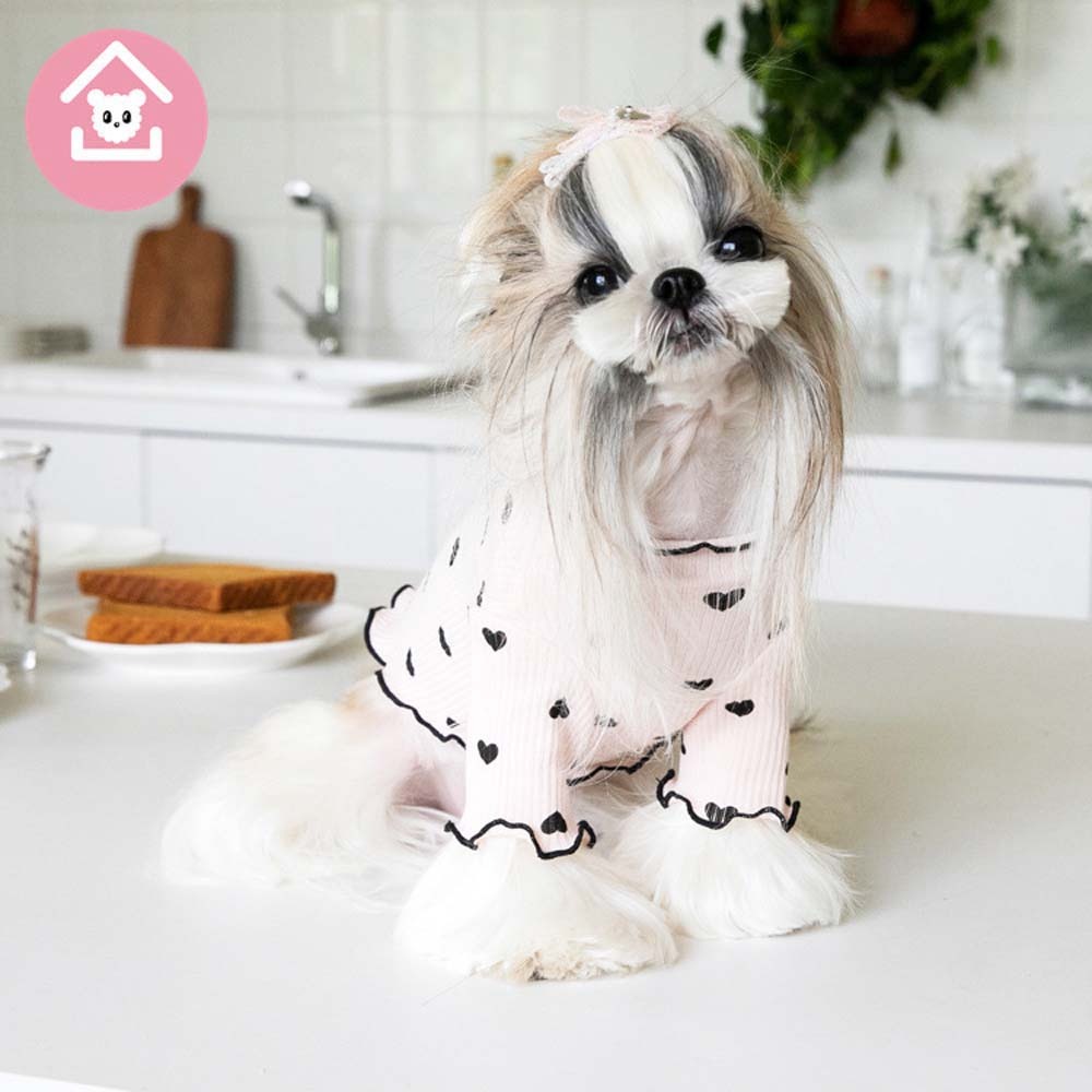 Ruffle Edge Ljubek potiskan hišni jopič - jesenska zimska oblačila za pse in mačke Pink XXXL