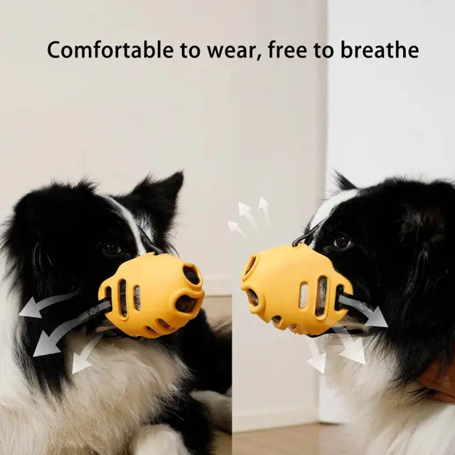 Preprečuje ugrizanje in žvečenje: Ta nagobčnik je idealen za pse, ki imajo navado ugrizniti ali žvečiti predmete. Izdelan je iz trpežnega materiala TPE, ki je odporen na ugrize in zagotavlja dolgotrajno uporabo. Nagobčnik je zasnovan tako, da psu preprečuje odpiranje ust, kar zmanjšuje tveganje za ugrize in žvečenje. Hkrati pa omogoča psu dihanje in pitje vode.