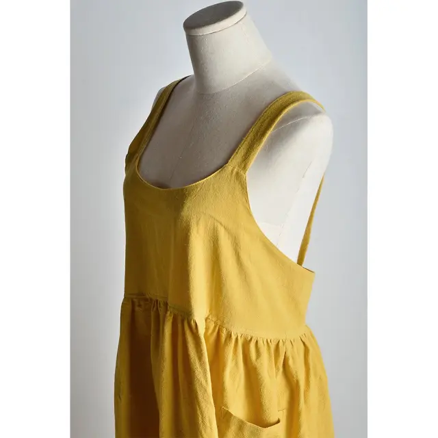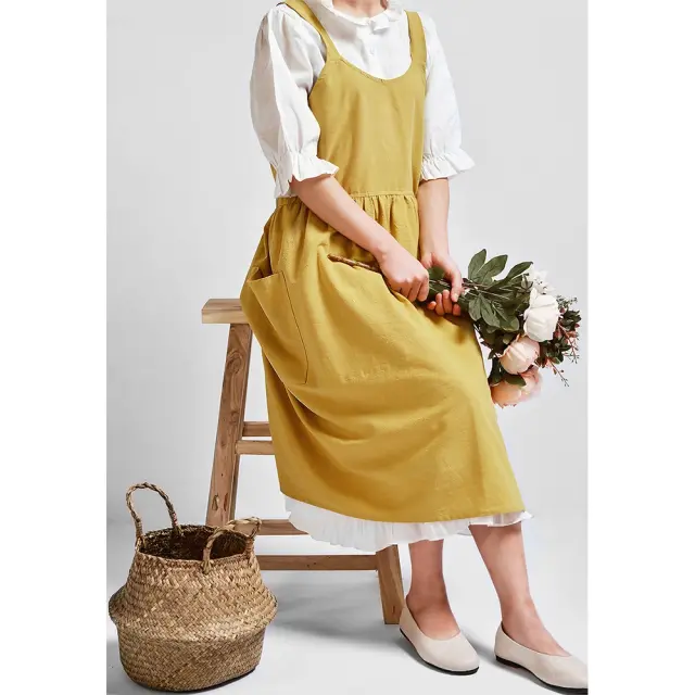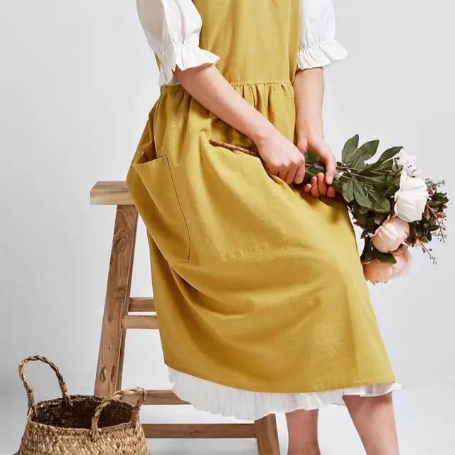 Rumeni bombažni predpasnik - eleganten predpasnik z vezalkami za kuhinjo