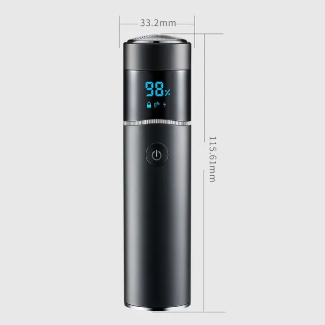 S-1090 IPX7 vodoodporen prenosni okrogli električni brivnik z 8D LED digitalnim zaslonom (črn)