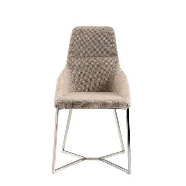 S tkanino oblazinjen jedilni stol 4008 Angel Cerdá S.L. Sodobno oblikovan jedilni stol, oblazinjen s tkanino. Avantgarden in sodoben stol z izvirno strukturo nog iz 22 mikronov kromiranega nerjavečega jekla. Sedež iz poliuretanske pene s prostornino 25 kg/m3 in obdajajoča oblika mu dajeta edinstven slog v kombinaciji z največjim udobjem - STILJ: Ta izvirni jedilni stol sodobnega dizajna bo poskrbel za drugačen in eleganten dotik, ki ga iščete v svojem domu in je zvest najnovejšim trendom na področju dekoracije. - Vsestranski in funkcionalni dizajn omogoča, da se prilega vsaki vrsti dnevne sobe ali jedilnice in postane glavni junak prostora. - KAKOVOST: Vsi naši jedilni stoli so izdelani iz najkakovostnejših materialov, kar zagotavlja dolgotrajno in funkcionalno pohištvo. - DEKORACIJA: Zaradi izvirne zasnove in mehkega oblazinjenja iz tkanine boste v svoji jedilnici dobili drugačen in prepoznaven dotik, ki ga iščete. - UDOBJE: Velikost sedeža in oblazinjenje iz poliuretanske pene s prostornino 25 kg/m3 vam bosta omogočila največje udobje, ne da bi pri tem pustili ob strani najvišje trende