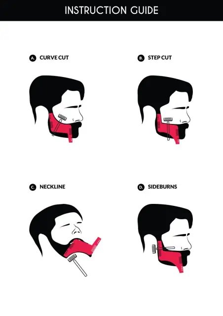 Enostaven za uporabo: šablona za brado je narejena iz prozornega ABS za optimalno vidljivost in nadzor. Preprosto ga položite na obraz, držite na mestu in s prirezovalnikom ali brivnikom sledite linijam.